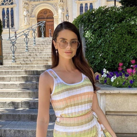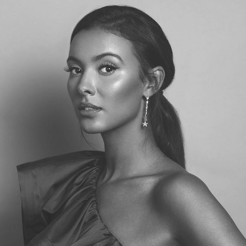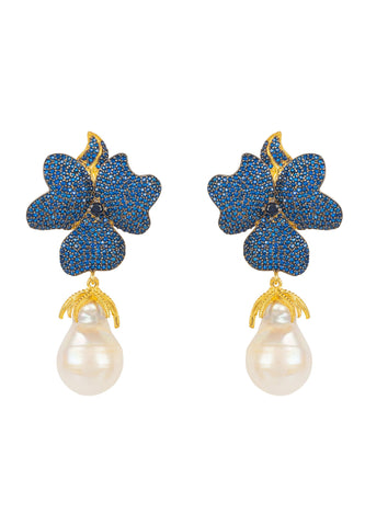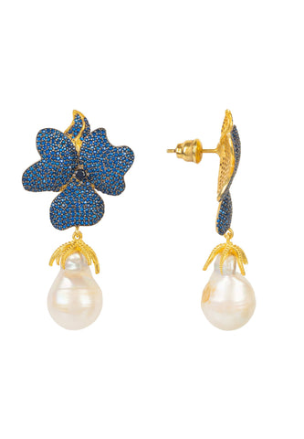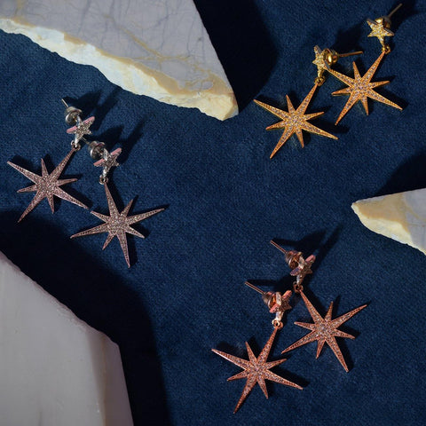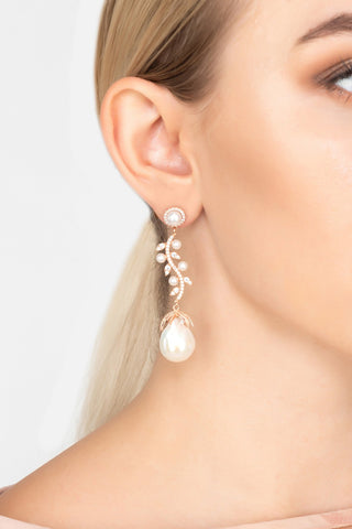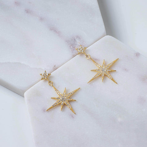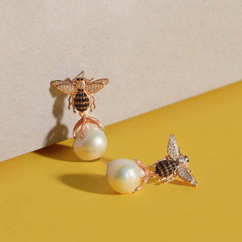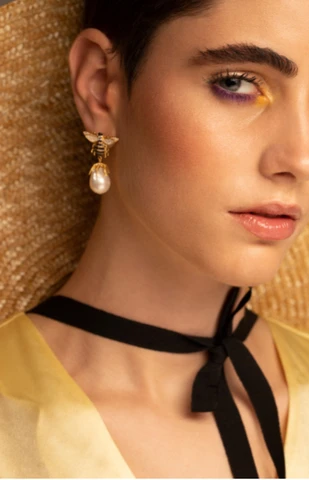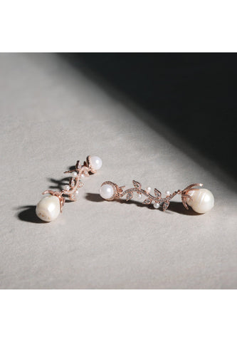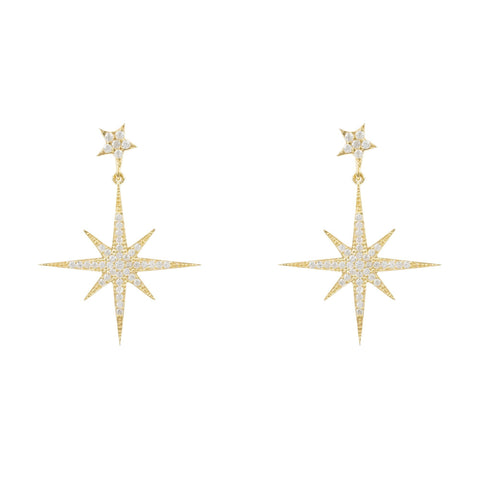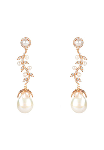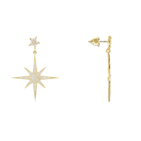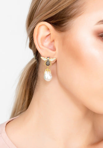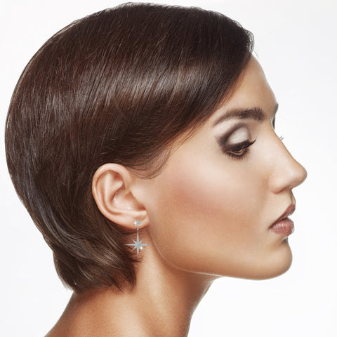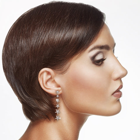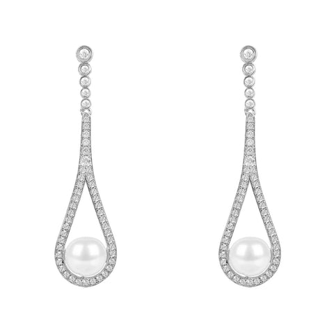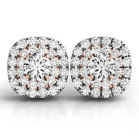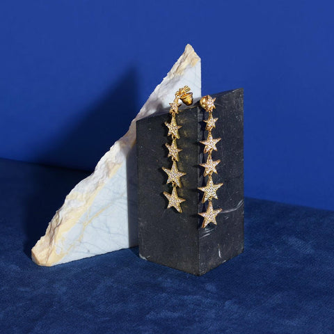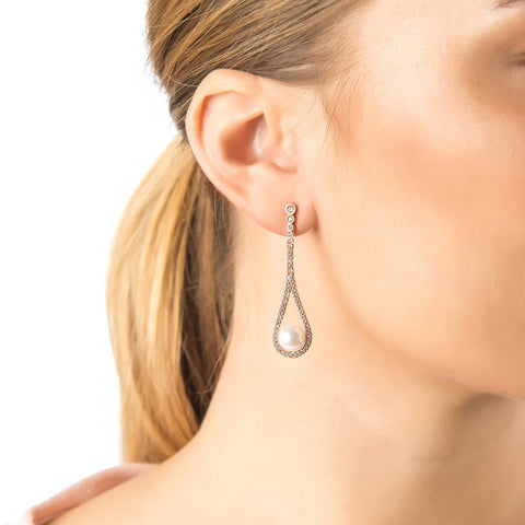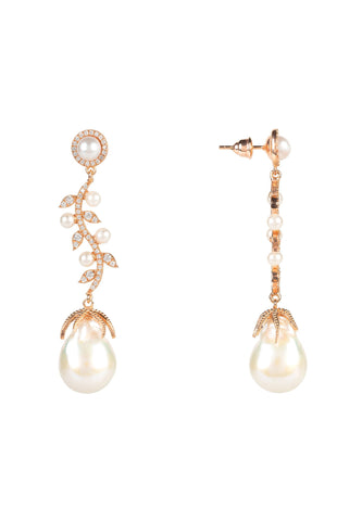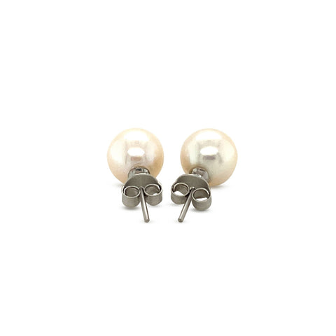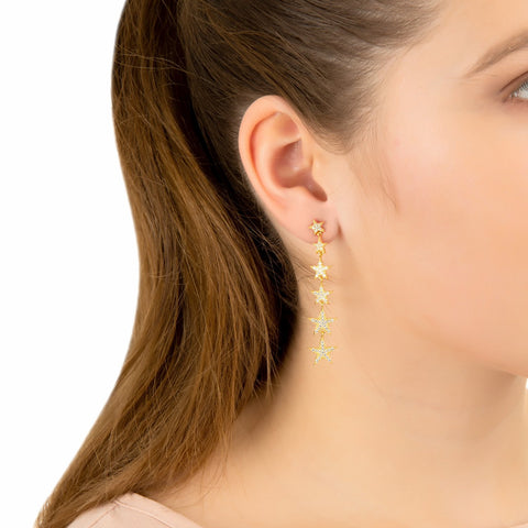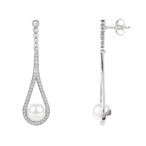 Hanging Chain Post Earrings with Bead Accents in 14k Yellow and White Gold