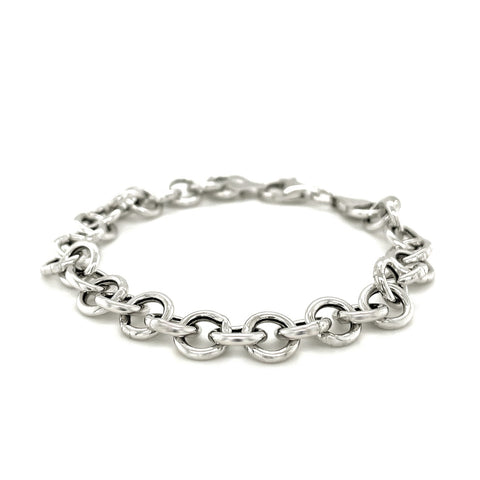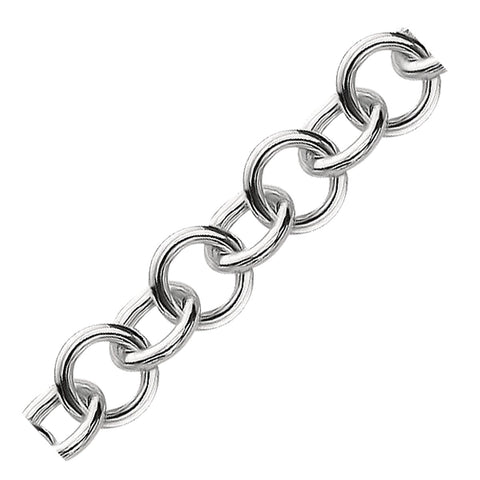 Sterling Silver Rolo Style Polished Charm Bracelet with Rhodium Plating